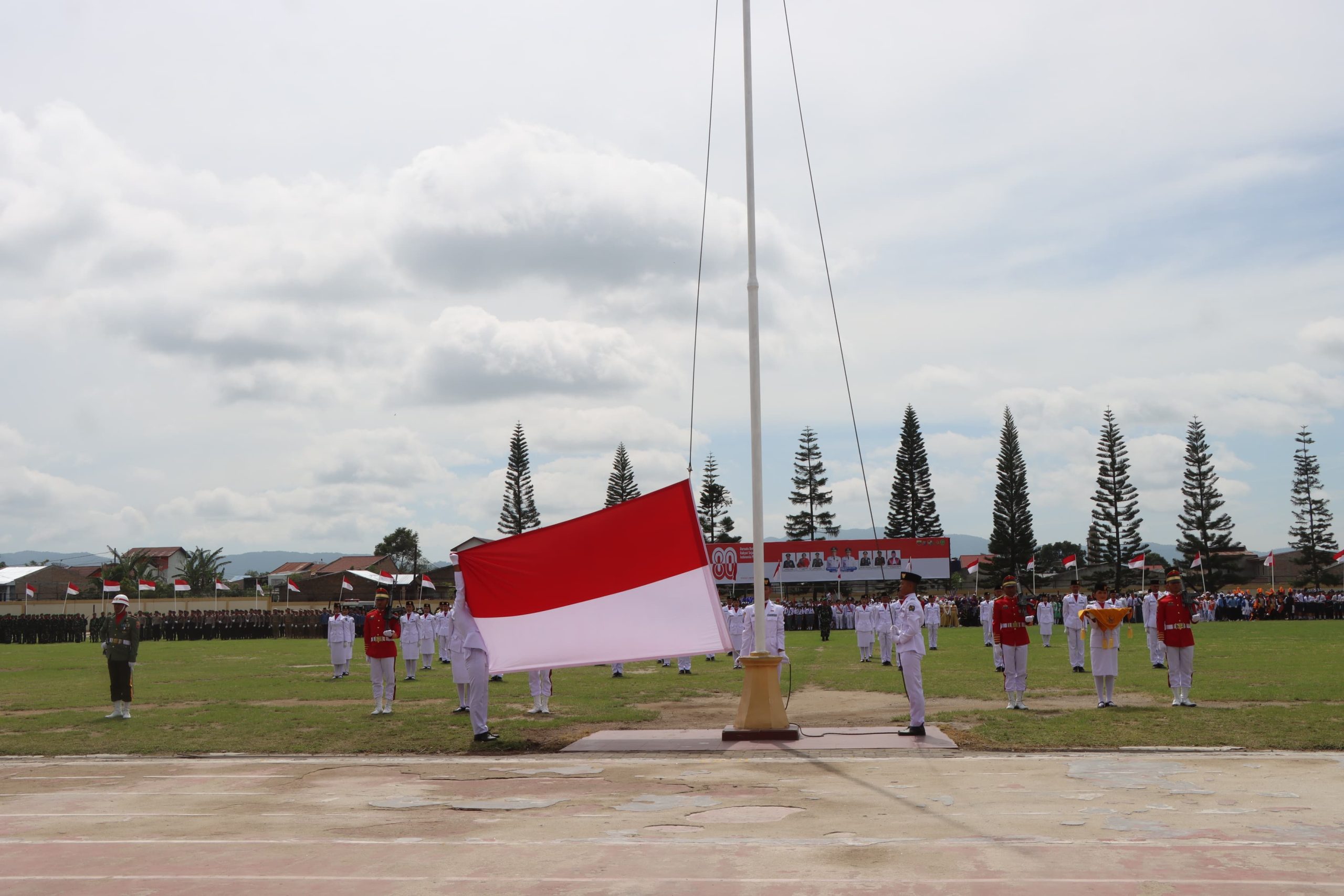 Upacara Detik-detik Proklamasi Kemerdekaan Republik Indonesia tahun 2025 yang ke 80 berlangsung khidmat di Lapangan Samura, Kabanjahe, Minggu (17/08/2025) pukul 10.00 WIB. Seluruh jajaran Pemkab Karo hadir.