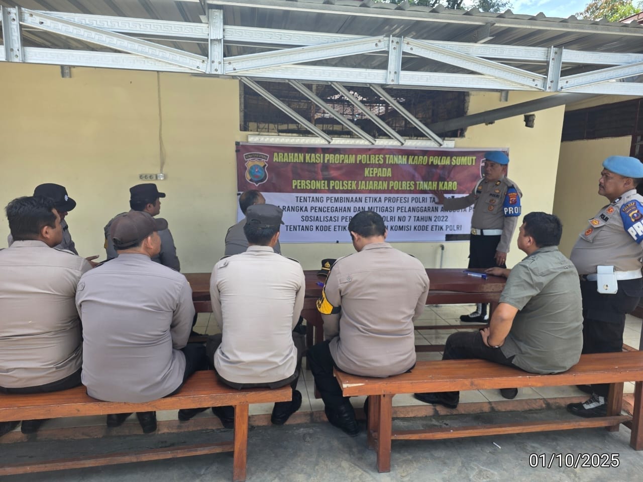 Guna meningkatkan disiplin dan mencegah pelanggaran di lingkungan internal kepolisian, Seksi Profesi dan Pengamanan (Sipropam) Polres Tanah Karo melaksanakan kegiatan sosialisasi pencegahan pelanggaran terhadap personel, Selasa (01/10/2025) pukul 10.00 WIB di Mapolsek Tigabinanga.