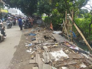 Tapi, anehnya, ketika lapak para PKL telah rata dengan tanah, ada bangunan permanen yang tak disentuh pihak kecamatan dan Satpol PP. Padahal bangunan itu berdiri di atas drainase. Kabarnya bangunan PKL itu dibekingi OKP.