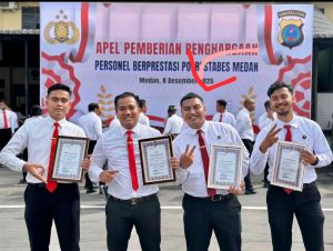 Hal itu diketahui berdasarkan foto yang didapat melalui akun Tiktok @Yakin_Jr45, Jumat (19/12/2025). Ipda Jonas terlihat sedang berpose bersama rekannya sesama personel Sat Reskrim Polrestabes Medan setelah menerima penghargaan.