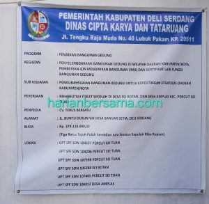 Rehab WC enam SDN di beberapa desa di Kec. Percut Sei Tuan, dengan nilai kontrak Rp379.110.000, misalnya. Pengerjaan yang dilakukan CV Terus Bersatu masih jauh dari harapan.