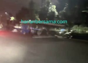 Pantauan kru harianbersama.com di lokasi, Jum’at (19/02/2026) badan jalan menjadi menyempit karena parkir truk dan peralatan pasar malam tersebut.